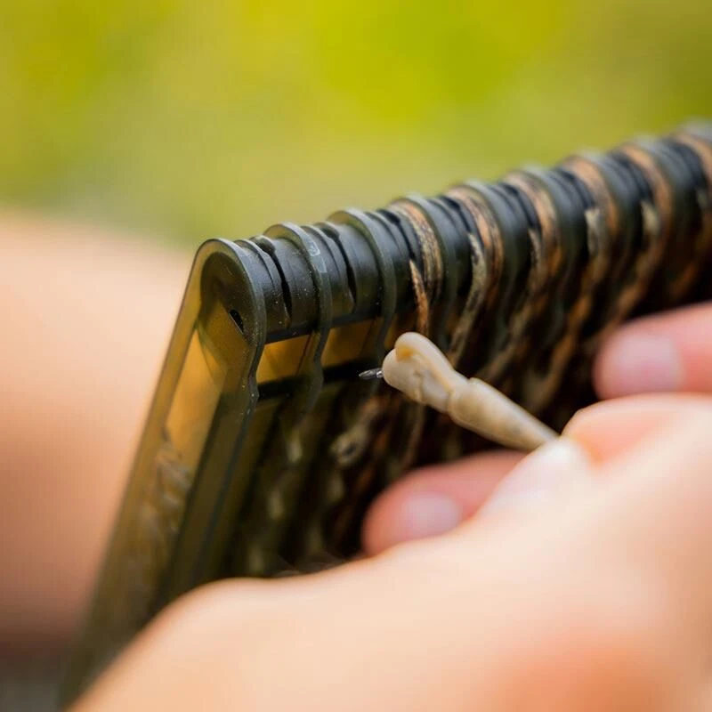 Het Leader Rack biedt ruimte voor het bewaren van alle soorten voorgeknoopte leaders. Te bevestigen met behulp van de metalen speld of de gegoten ‘hood’ secties.
