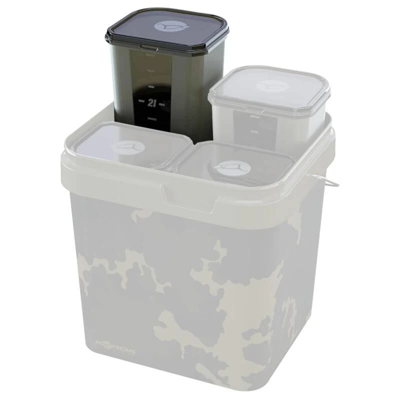 De Spare Kontainers zijn ook voorzien van zijmarkeringen per 0.25 liter, zodat je precies kan zien hoeveel er gebruikt wordt waardoor je zeer nauwkeurig samengestelde spodmixen kunt maken, met elke keer dezelfde verhoudingen van elk bestandsdeel.