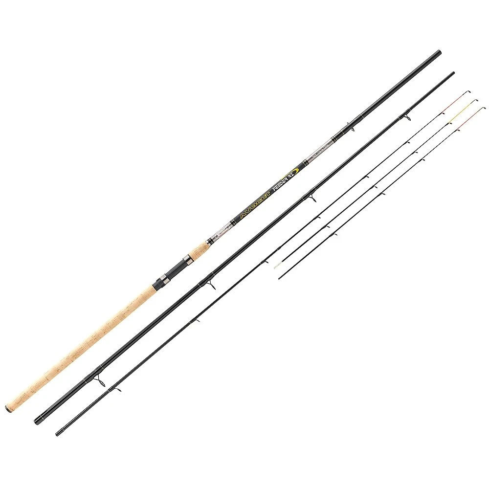 Met deze hengels is het mogelijk gevulde voerkorven tot een gewicht van 90 gram te werpen. Deze 3 delige hengels hebben een transportlengte van 1.15 meter en een gewicht van 185 gr.