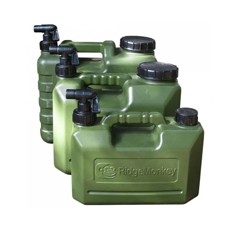 De waterkannen van Ridgemonkey zijn vervaardigd met hoogwaardig HDPE materiaal. Dit maakt ze onweerstaanbaar in gebruik. Het mooie aan deze Heavy Duty water carriers zijn de kraantjes die erop zitten. Zo kan men ook kleinere pannetjes of kopjes controleerbaar met water vullen. De 10 en 15 liter varianten zijn uitgevoerd met een extra grote dop voor snelle vulling.